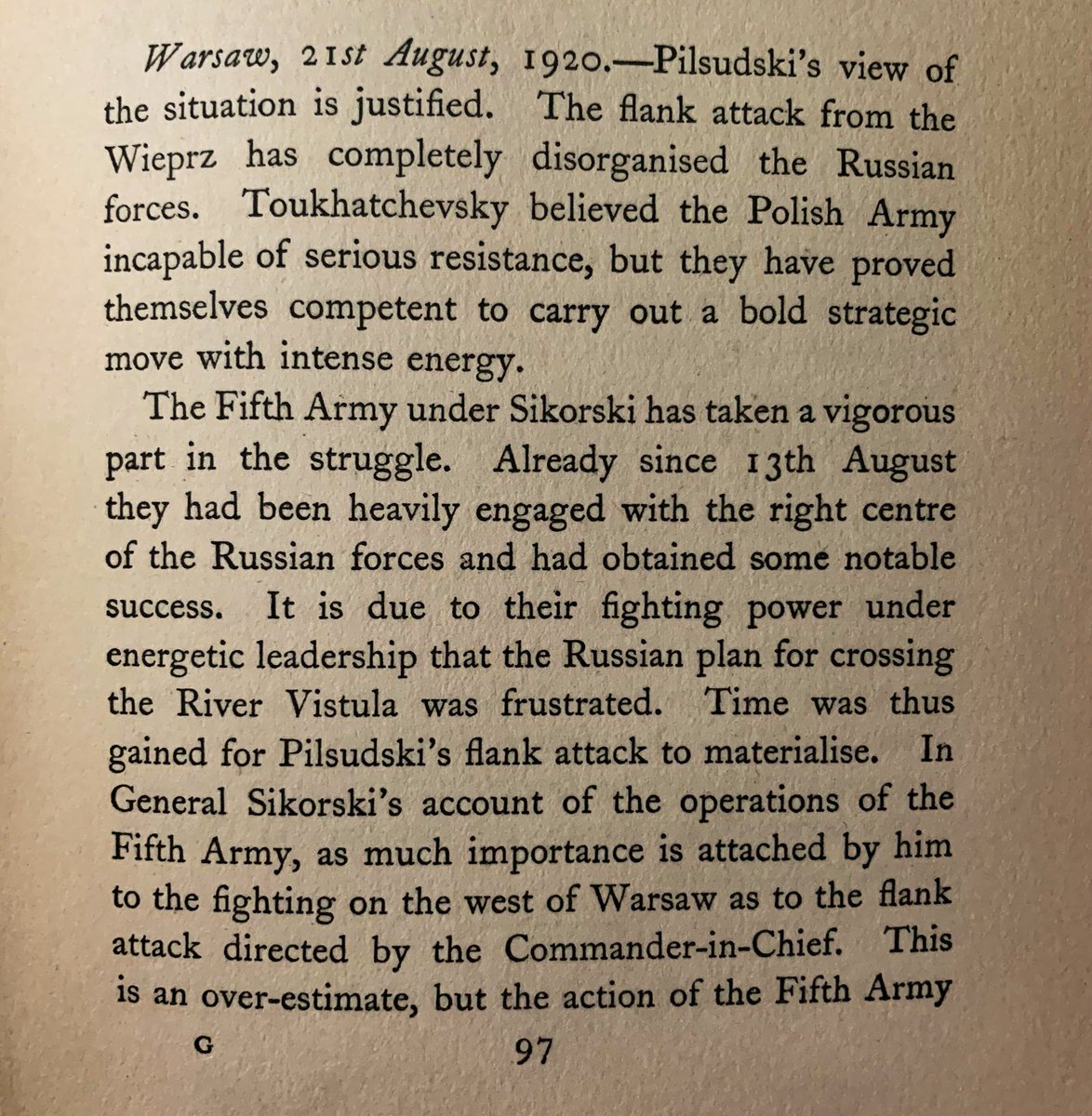 If you want to learn more about the Miracle of the Vistula, I highly recommend you the book by Edgar Vincent D'Abernon, The eighteenth decisive battle of the world: Warsaw, 1920 📚